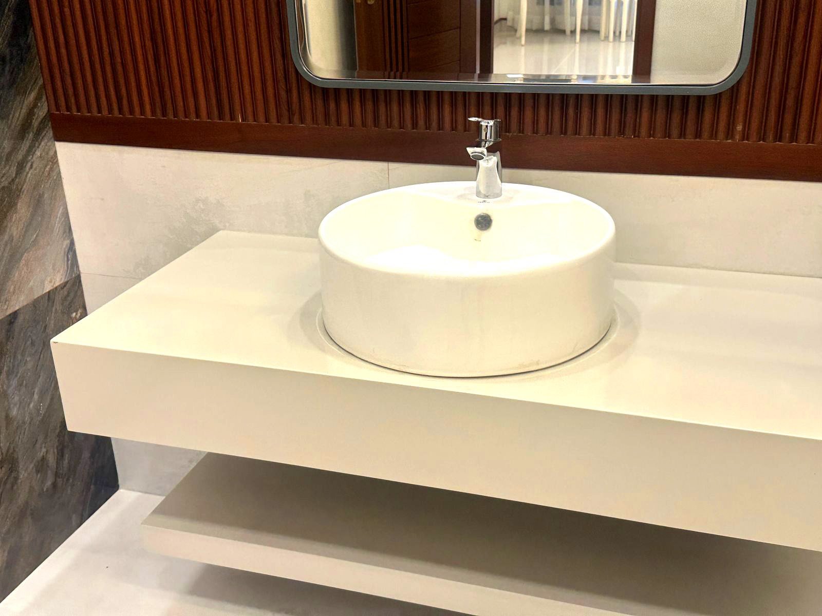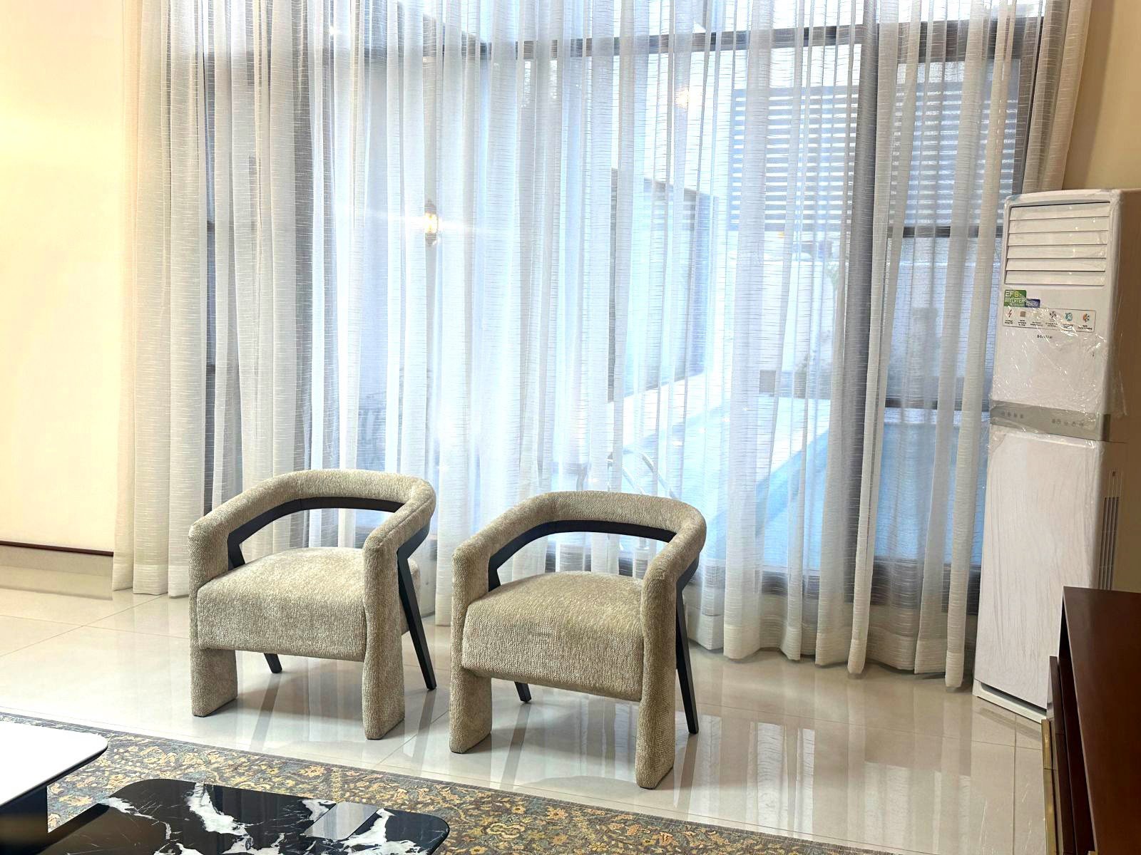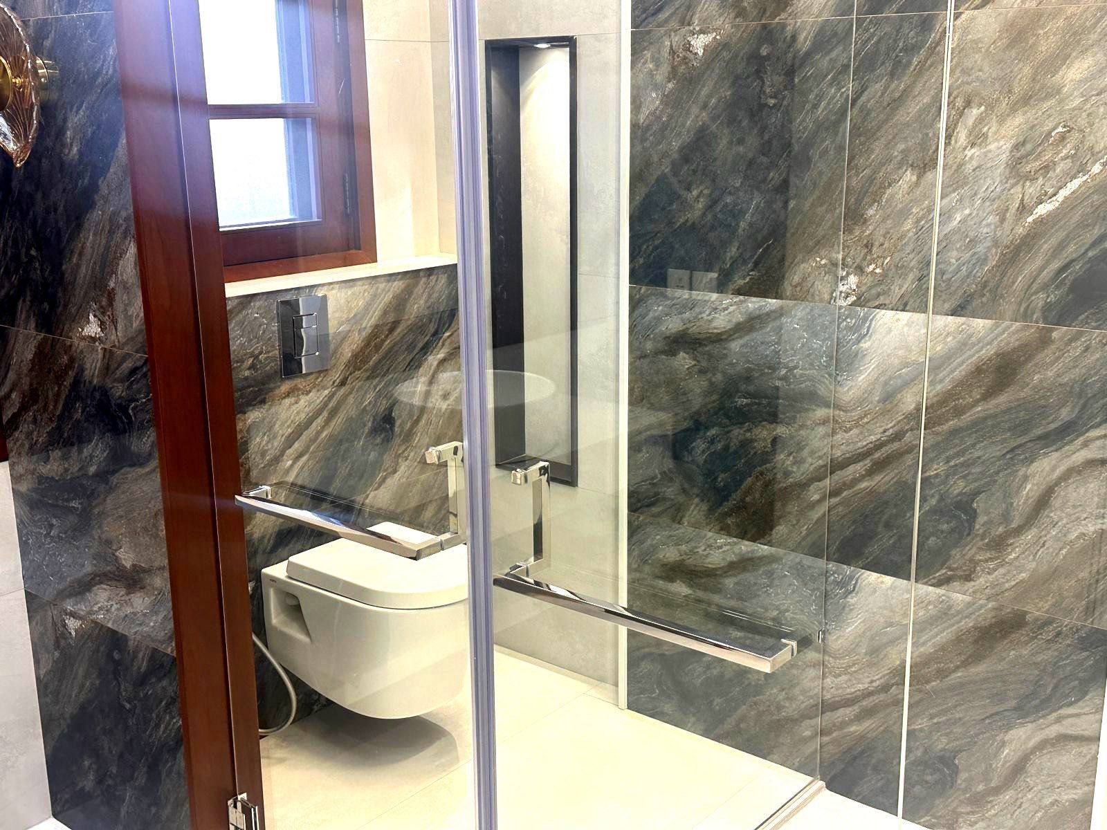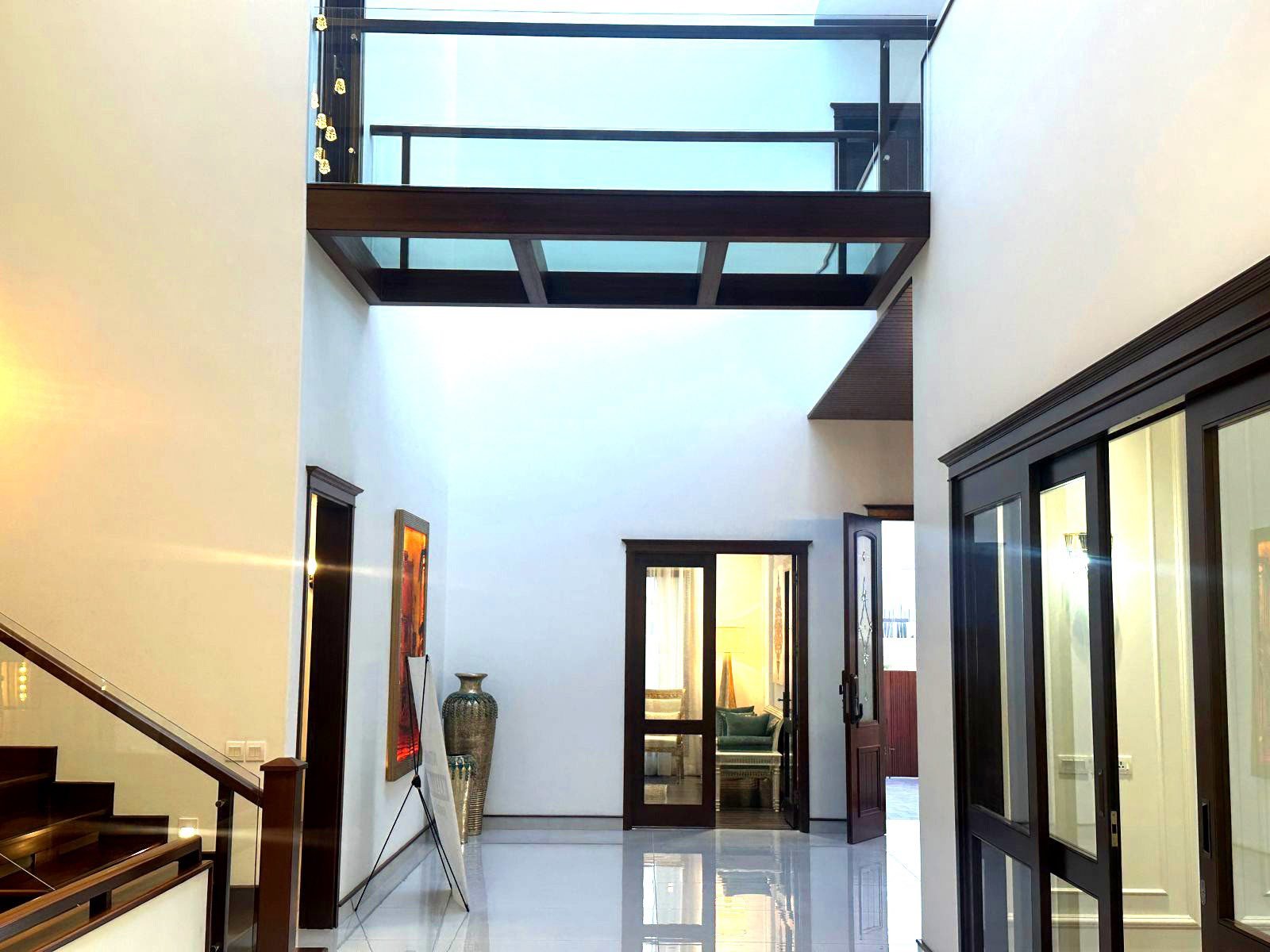 Designed with a well-balanced 2 + 4 bedroom layout, the home offers expansive living areas filled with natural light. A striking glass staircase with wooden steps forms a refined architectural statement, while premium materials throughout ensure durability and elegance.